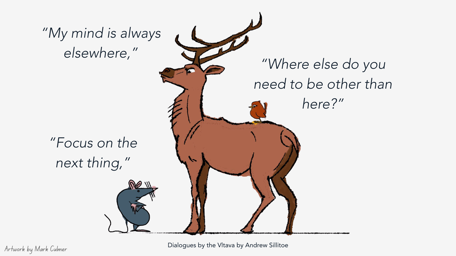 The walk by the Vltava River quiets the Rat through stillness.